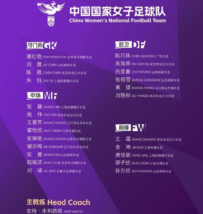 值得一提的是,多名效力于海外联赛的中国女足球员将直接飞赴澳大利亚与大部队会合。她们分别是:效力于法甲第戎女足的前锋吴澄舒和中场王妍雯;效力于苏格兰超级联赛豪门格拉斯哥流浪者女足的边后卫李梦雯;效力于土耳其超级联赛加拉塔萨雷女足的后腰杨丽娜;以及效力于澳超西悉尼流浪者女足的前锋袁丛和后卫王莹。